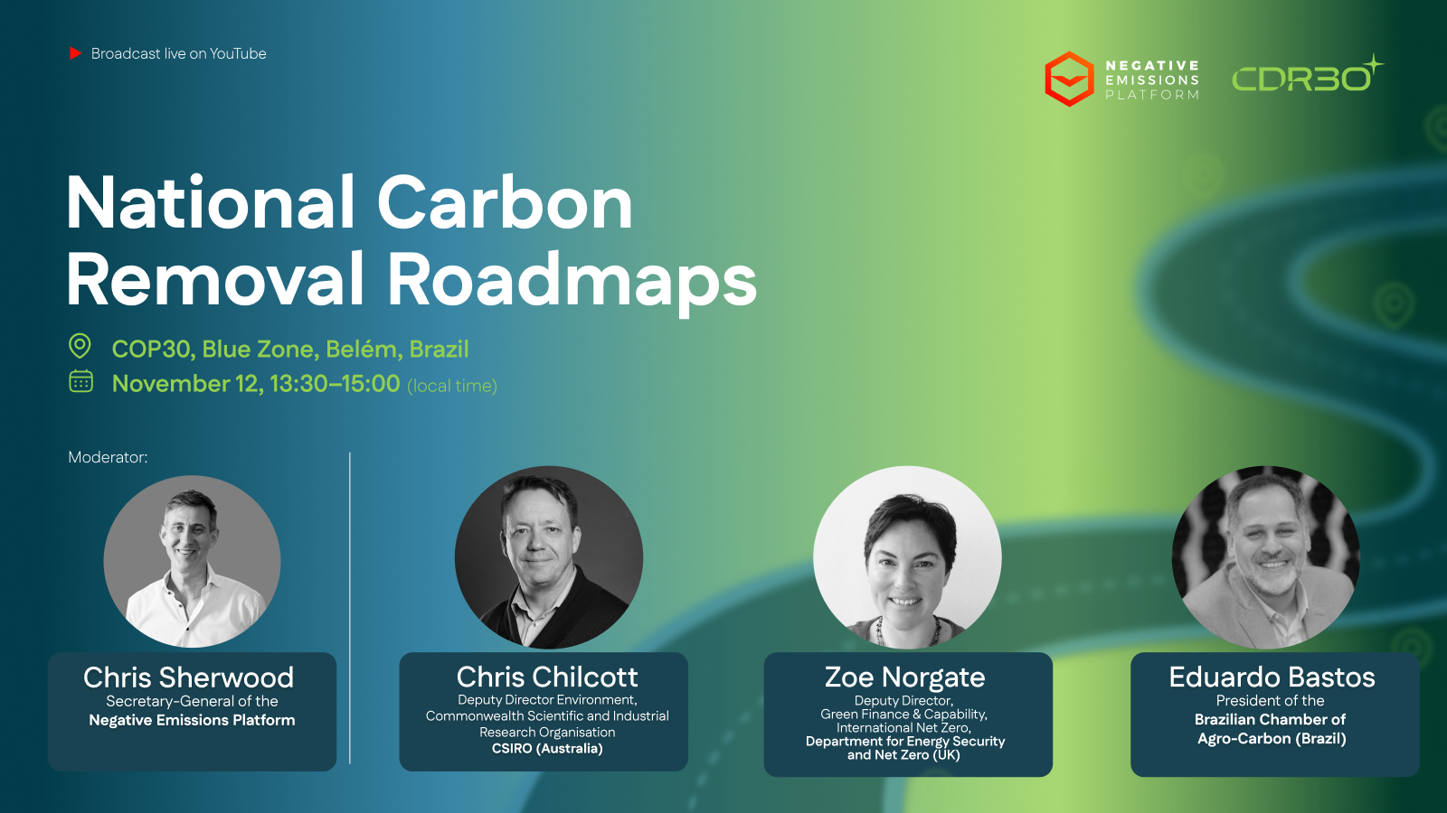 Hosted by the Negative Emissions Platform (NEP) National playbooks for high-integrity, durable carbon removals are taking shape. Hear what’s live now, what’s launching next, and how policies turn ambition into bankable projects, de-risking supply, unlocking demand, and enabling MRV, transport and storage. What we’ll cover Roadmaps on the Record: Australia’s roadmap preview; California’s legislative push; … Read more
